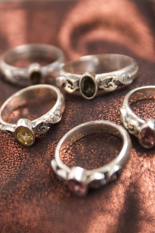 King Scroll Ring - size 5.25 - Tourmaline